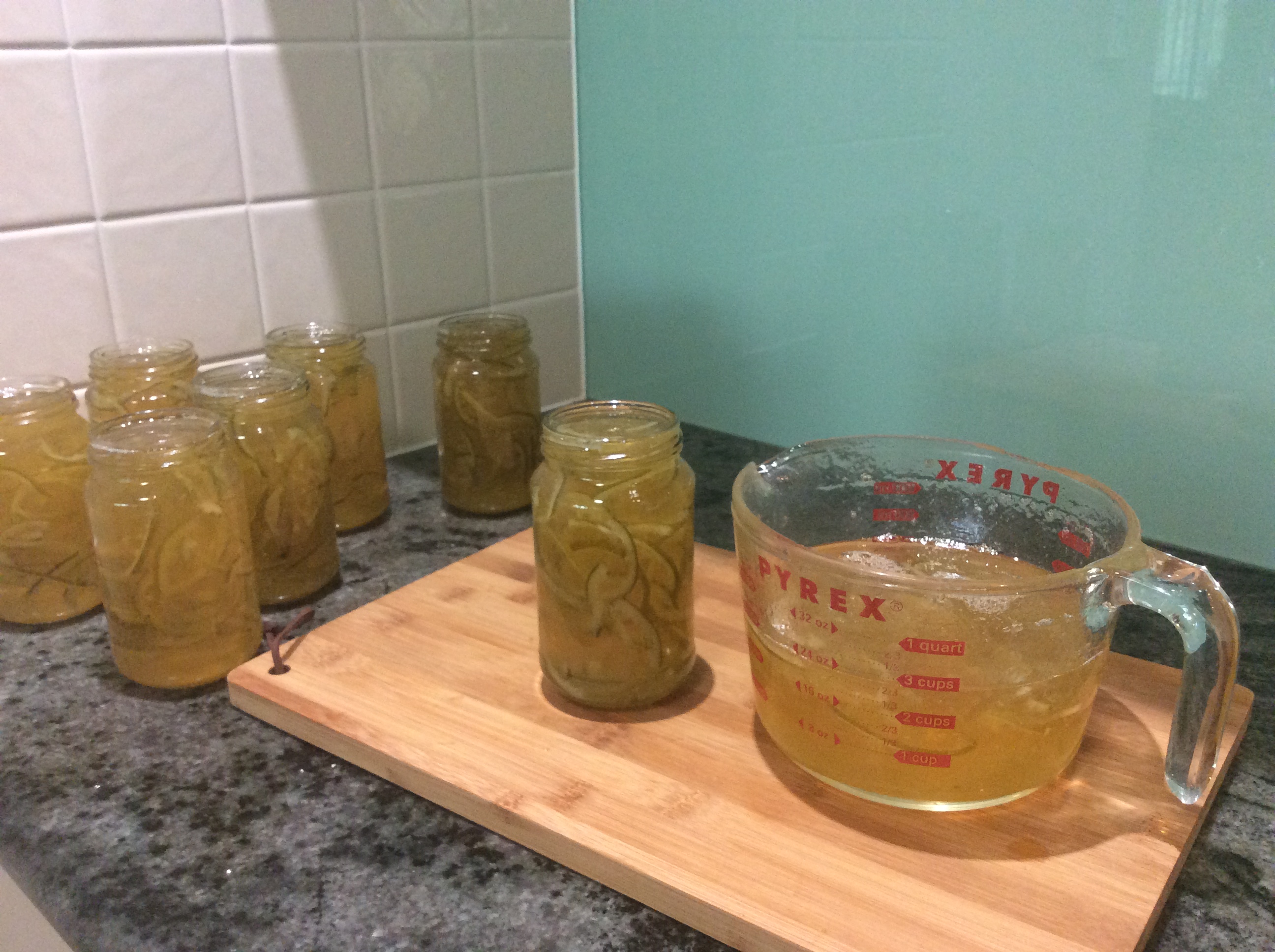 Finish filling all of the bottles and don’t move them until they are cold, so that the marmalade can properly set in the jar. I made around a dozen bottles from this batch. If properly prepared and sterilised jars are used the marmalade will keep for 6-12 months. Enjoy!