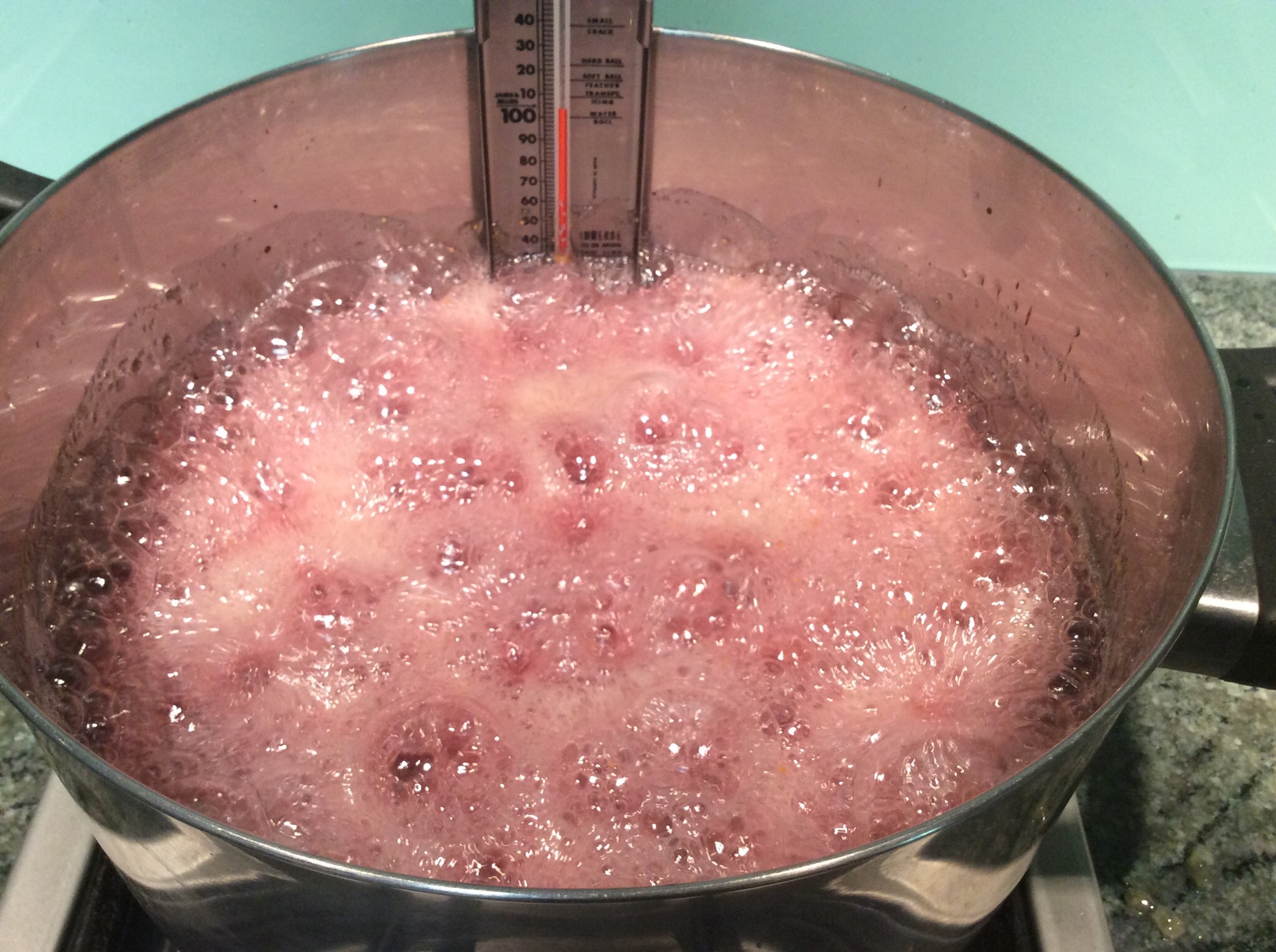Bring slowly to the boil, making sure that all of the sugar is properly dissolved before the mixture boils. Once it boils, the jam will jell quickly as there is very little liquid to evaporate, so watch it carefully that it doesn’t burn on the bottom of the pan. This isn’t a jam mixture to walk away from!